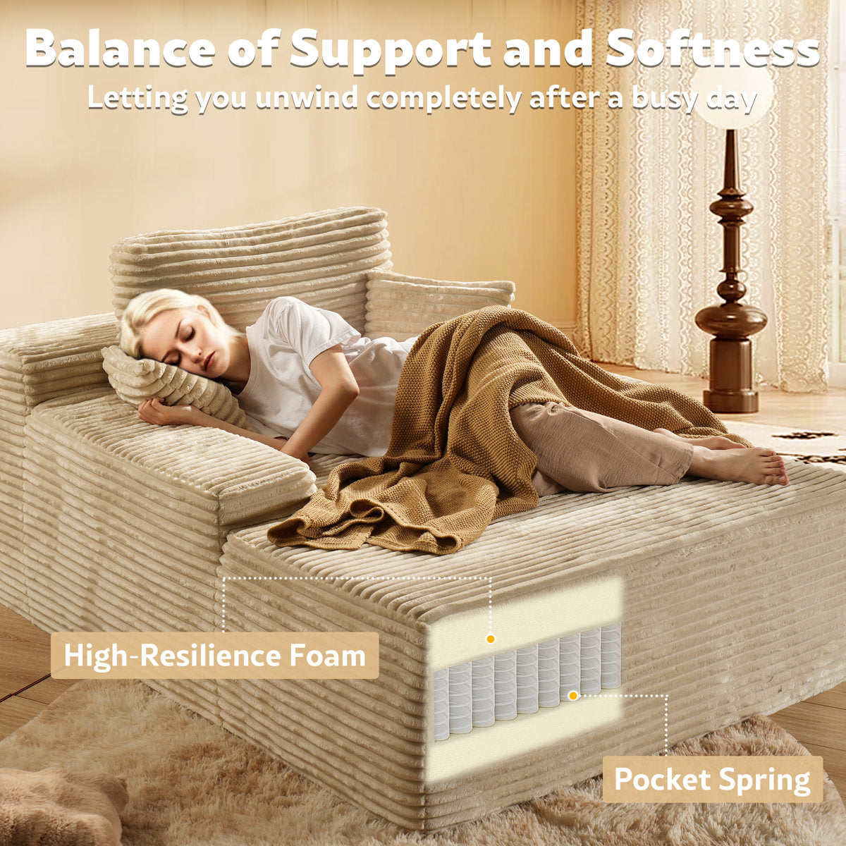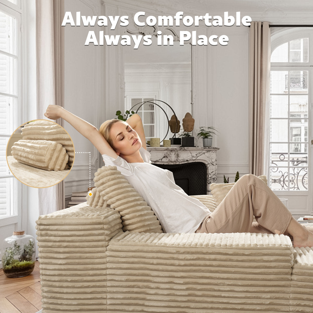 Seren 3-Piece No-Assembly Living Room Set, Plush Corduroy Modern Sectional Sofa With Loveseat And Chaise Lounge