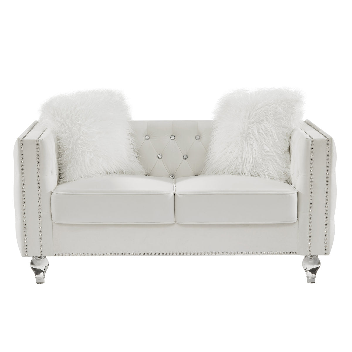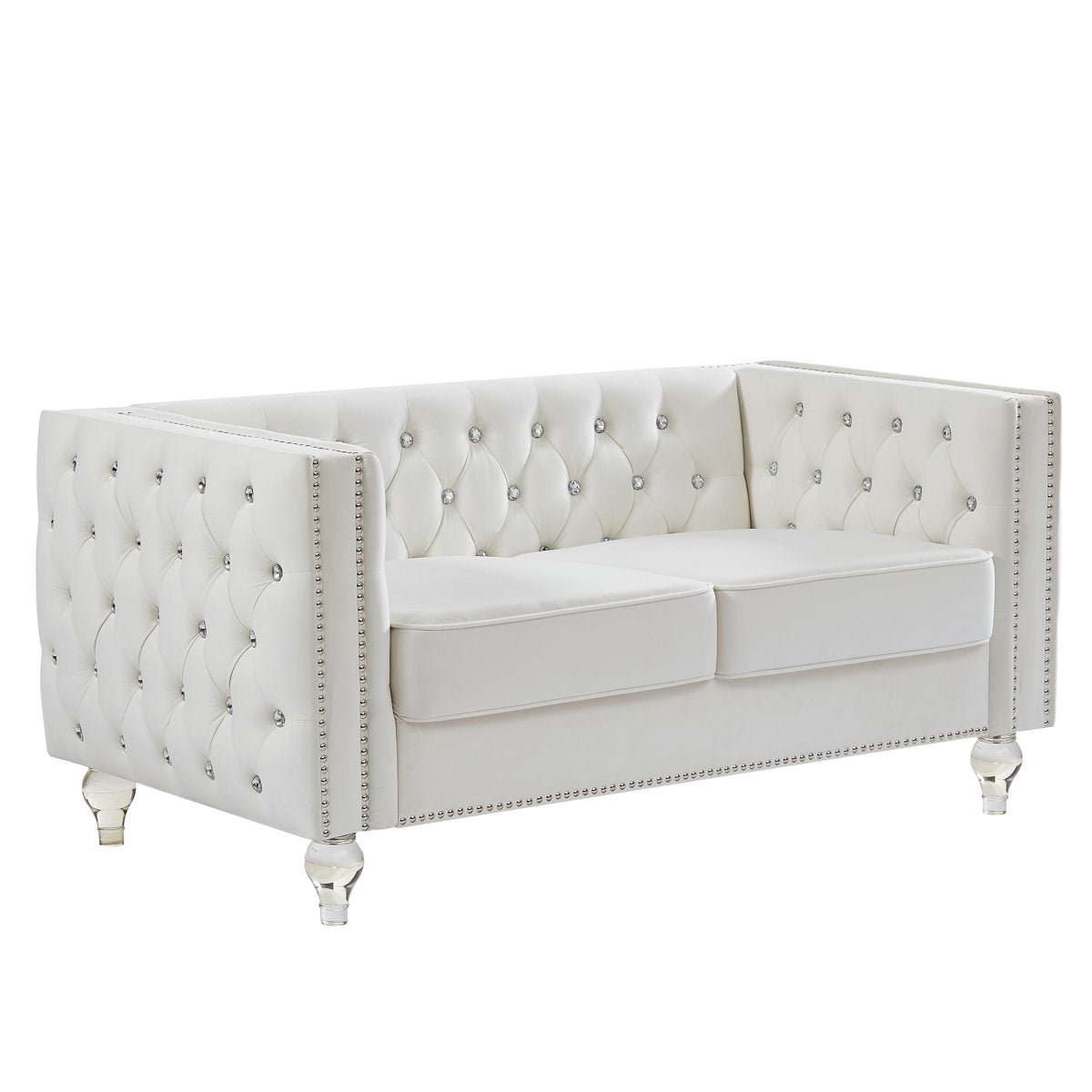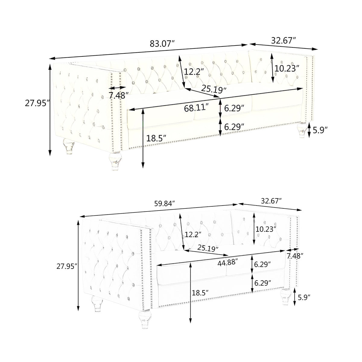 Indulge in the luxurious design of our nailhead and button tufted velvet sofa couch set, perfect for those with a nostalgic taste and a desire for aesthetic improvement. With crystal jeweled buttons and acrylic crystal legs, this sofa set brings glamour to any space. Our mid-century modern couch set fits perfectly between contemporary and traditional styles, making it a versatile piece of furniture that can be used as both interior decor and practical seating.