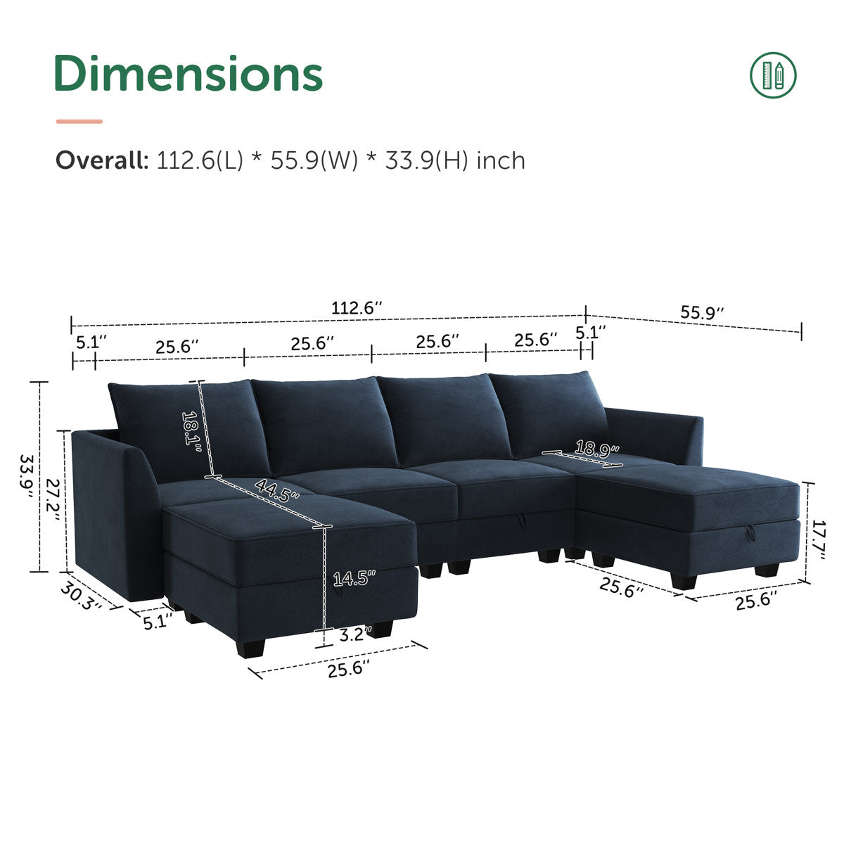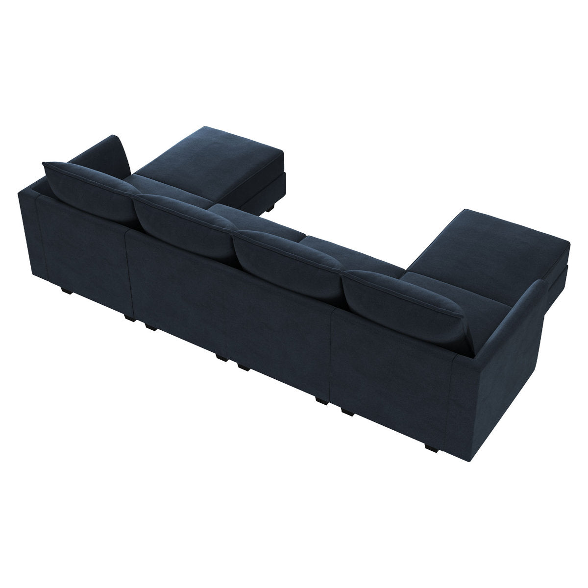 This modern sectional sofa, with its elegant design and sturdy wood frame wrapped in luxurious velvet, offers both beauty and exceptional comfort. Customizable and adaptable, it confers your seating to fit any space. Each of the six seats features hidden storage for a tidy space. Enjoy assembling this U-shaped sofa, adding a touch of sophistication to your room.