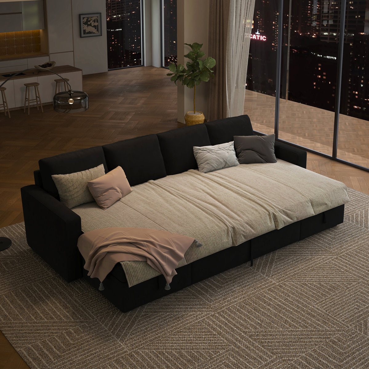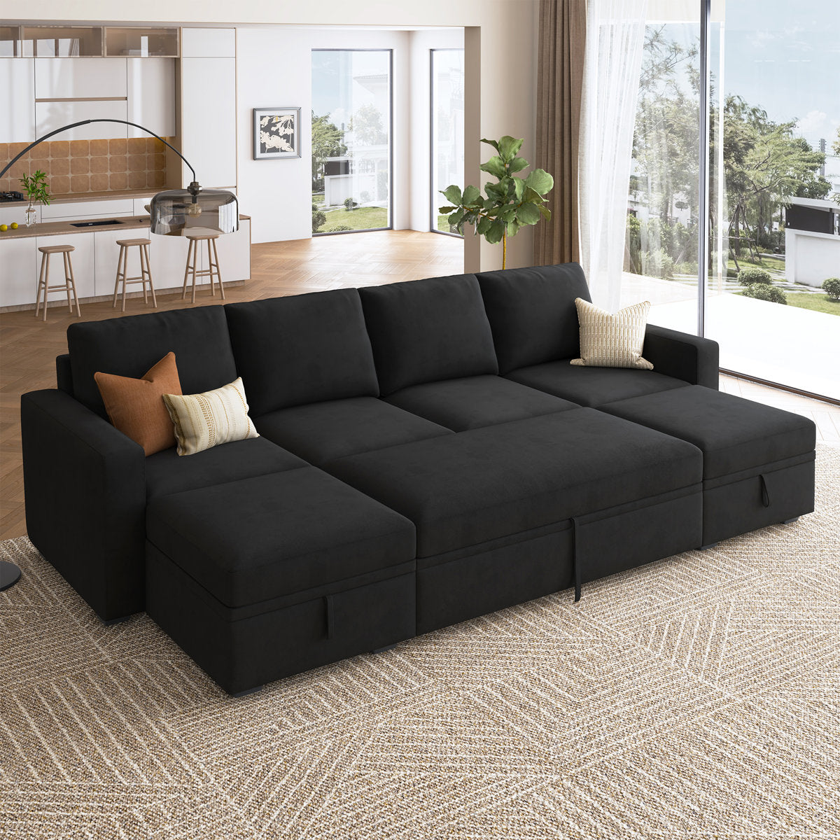 Niyona U Shaped Sleeper Pull Out Couch Storage Sectional Sofa