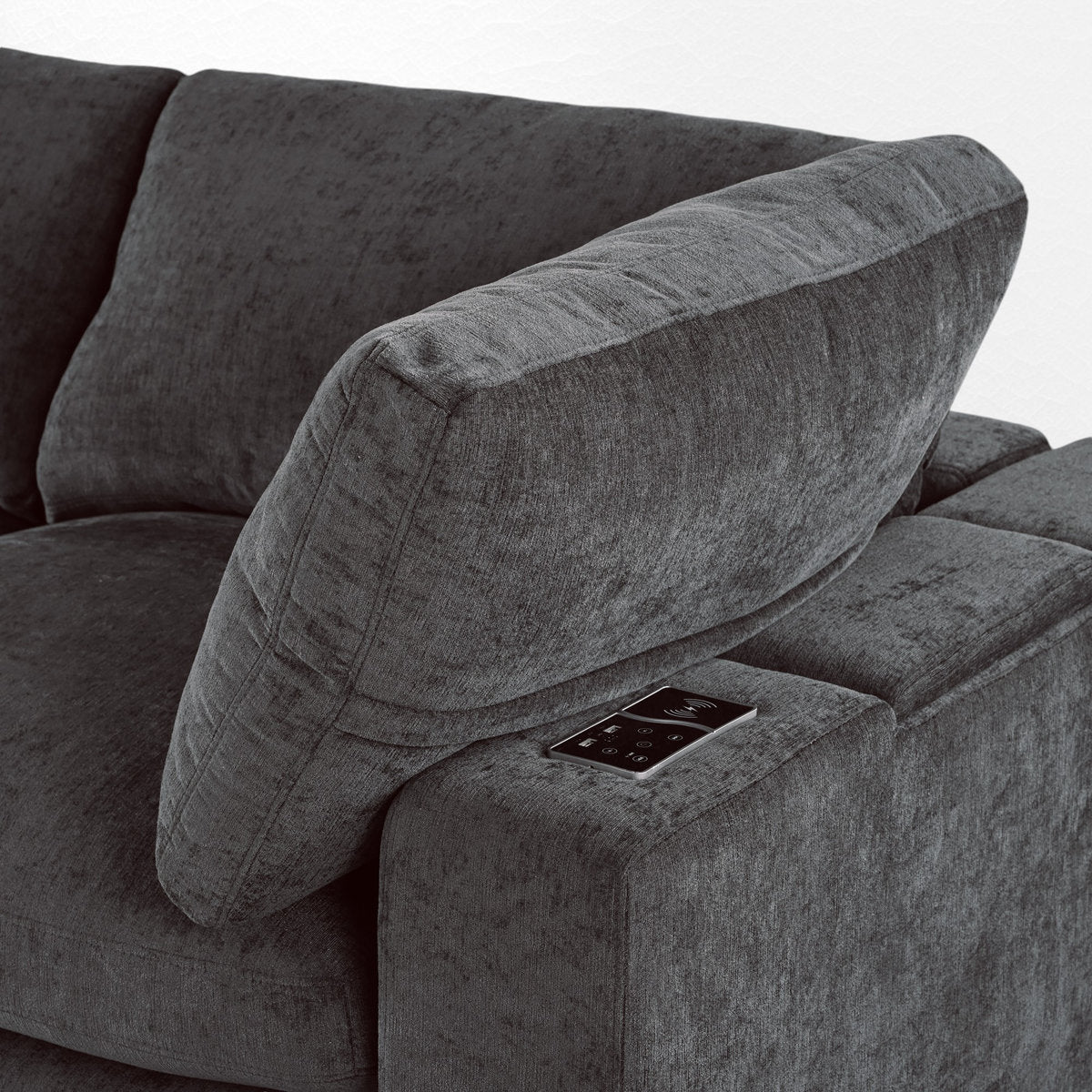 Bring cutting-edge convenience and cozy style into your living room with this modular upholstered sectional, perfect for contemporary spaces seeking high-tech functionality paired with luxurious comfort. This sofa is more than just a seating solution; with built-in Bluetooth speakers, it transforms your space into an entertainment hub, delivering rich, immersive sound that lets you enjoy your favorite playlists or podcasts without ever leaving your seat. The thoughtful design includes wireless charging and USB ports right at your fingertips, making it easier than ever to keep devices charged and ready for use. Integrated storage compartments hidden within the armrests offer a handy spot for stashing essentials like remotes, books, or magazines, helping you maintain a tidy, organized living area. Its modular design provides endless layout options, letting you create the ideal configuration for any room setup, whether it's a compact loveseat arrangement or a sprawling sectional perfect for family movie nights. With plush cushions and a streamlined modern look, this sectional combines style and technology to bring ultimate relaxation and functionality to your home.