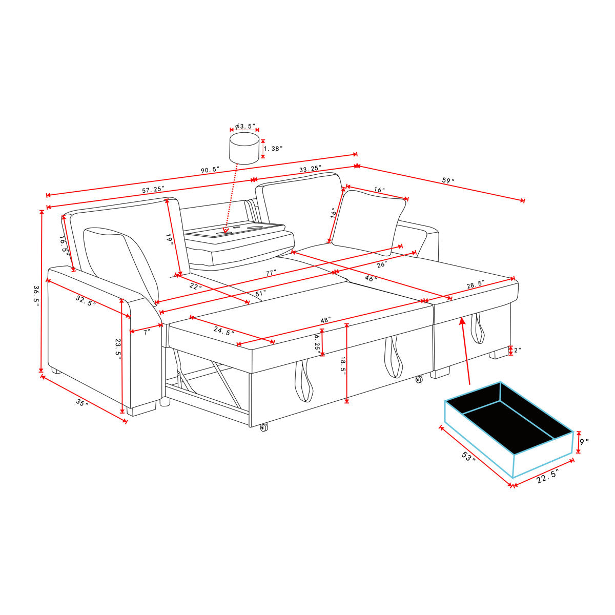 L-Shaped Sleeper Sofa Reversible Couch Pull Out Couch With Storage Chaise