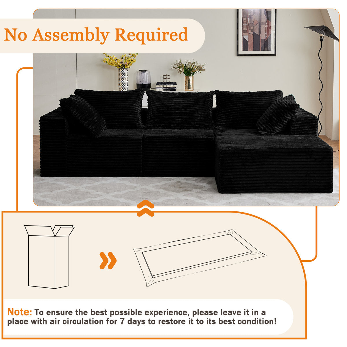 108" Cloud Modular Sectional Couch With L-shape Chaise, No Assembly Required Modern Comfy Sofa With Deep Seat & Plush Fabric, Upholstered Couches For Living Room, Bedroom