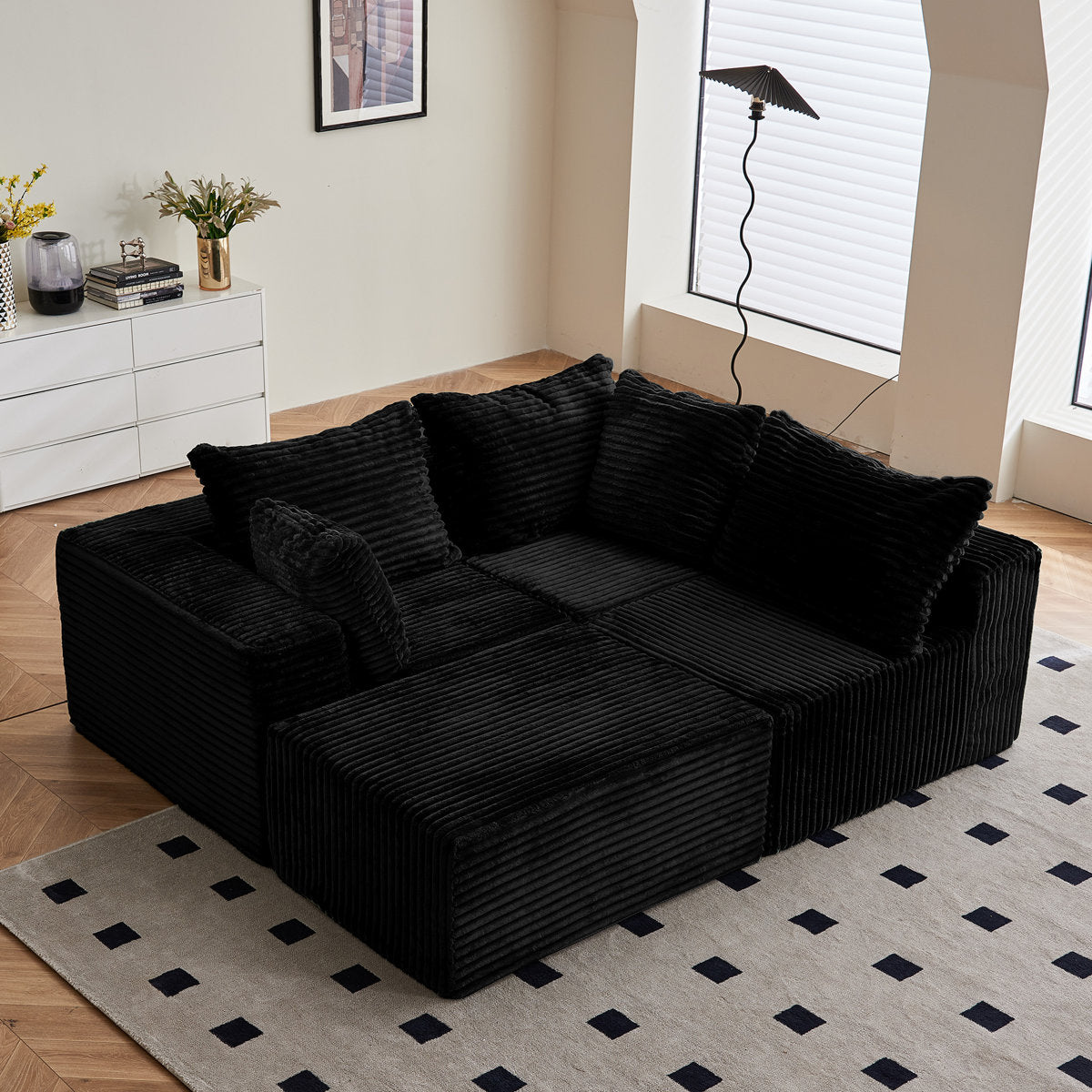 If you are still looking for a sofa that can provide comfort and relaxation space, this sponge sofa shaped by surface can provide you with any scene you need, the four-module sofa combination can allow you to enjoy different sofa shapes at the same time, you can transform it into a sleeper sofa, a large living room sofa, etc., to break the conventional shape. This sofa can have a classic look and entertaining function, making it an excellent choice for family space.