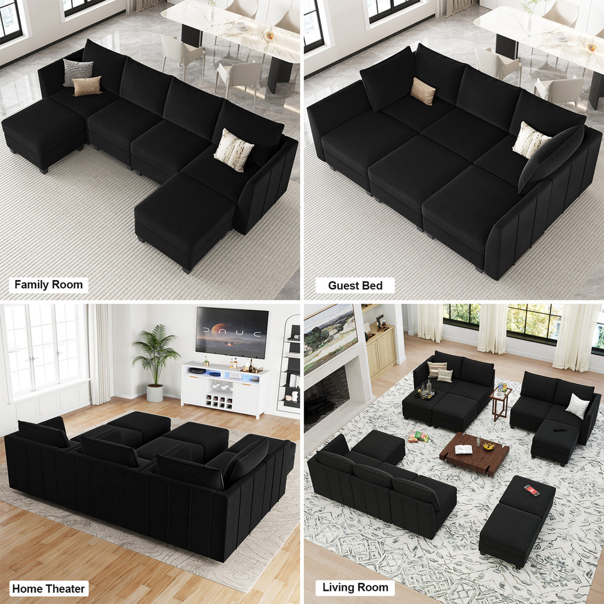 Allinson 9-Piece U Shaped Velvet Freely Combined Modular Sofa L-Shaped Solid Wood Sectional Storage Couch Livingroom Sofa with Ottoman