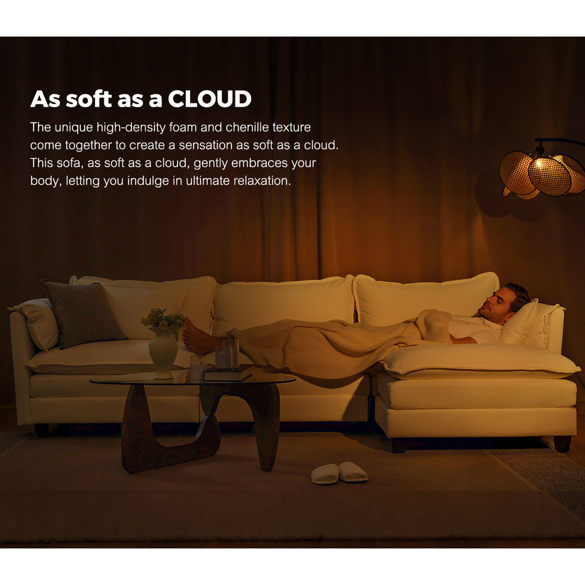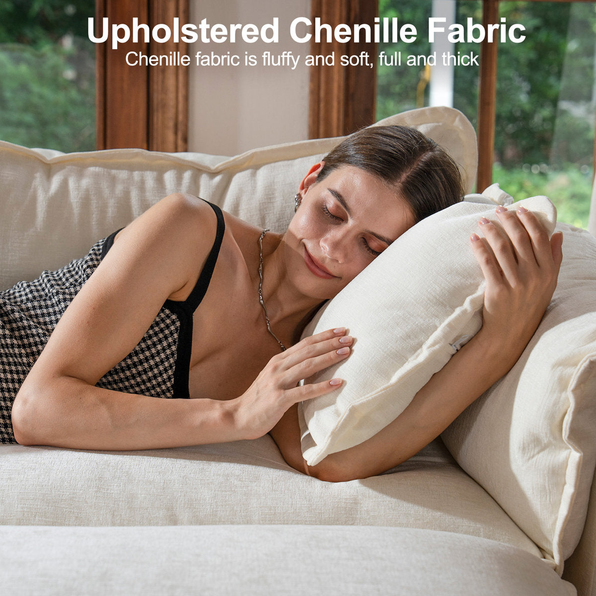 This 115-inch wide sectional sofa combines a solid wood frame with luxurious chenille upholstery, bringing both modern style and functionality to your home. Designed as a modular sectional, it comfortably seats 4-6 people with medium-firm foam cushions supported by sinuous springs for lasting comfort. The fully movable ottomans provide ample storage space and allow you to configure the sofa as a sectional couch in either a U-shaped Section or L-shaped couch layout, adapting perfectly to your space. Foam-filled back cushions with removable covers make maintenance easy, and the armrests come with two accent pillows for added comfort and style. Whether for entertaining or relaxing, this sectional is a versatile and stylish choice for any home.