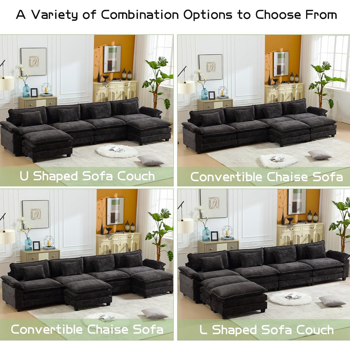 Adonia 154" Oversized U Shaped Sectional Sofa, Comfy Cloud Couch Deep Sectional Sofa with Ottomans for Living Room