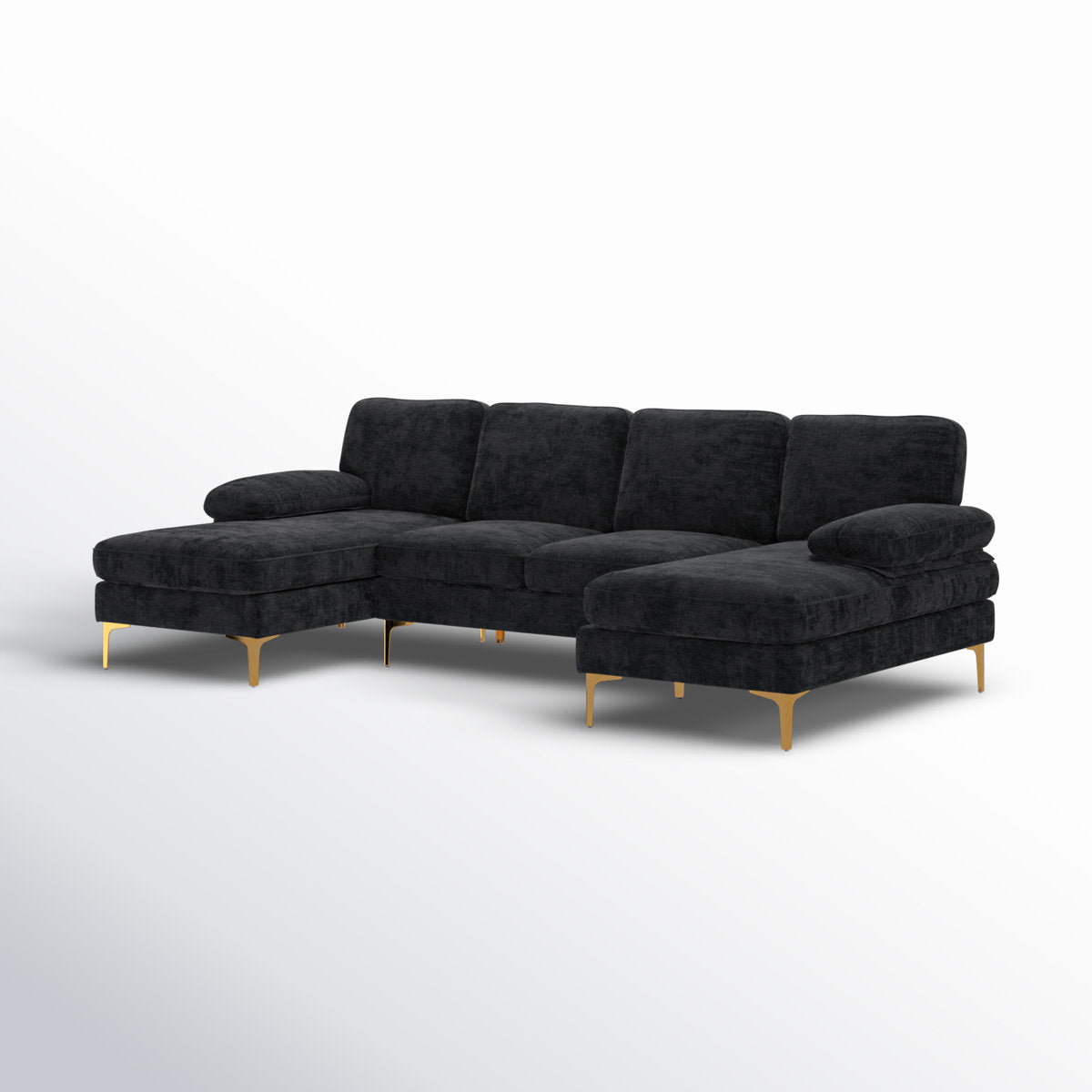 This 3-piece sectional sofa brings a glam vibe and plenty of comfort to your living room. Chenille upholstery feels inviting and adds a plush look to any spot in your home, while gold-finished bracket metal legs enhance this sectional's modern appeal. Designed for small spaces, this modular sectional can easily accommodate four people, making it great for entertaining guests or enjoying a cozy nap. The foam-filled seat and back cushions offer a supported seat. Plus, the easy-to-remove armrests give you extra elbow room whenever you need it.