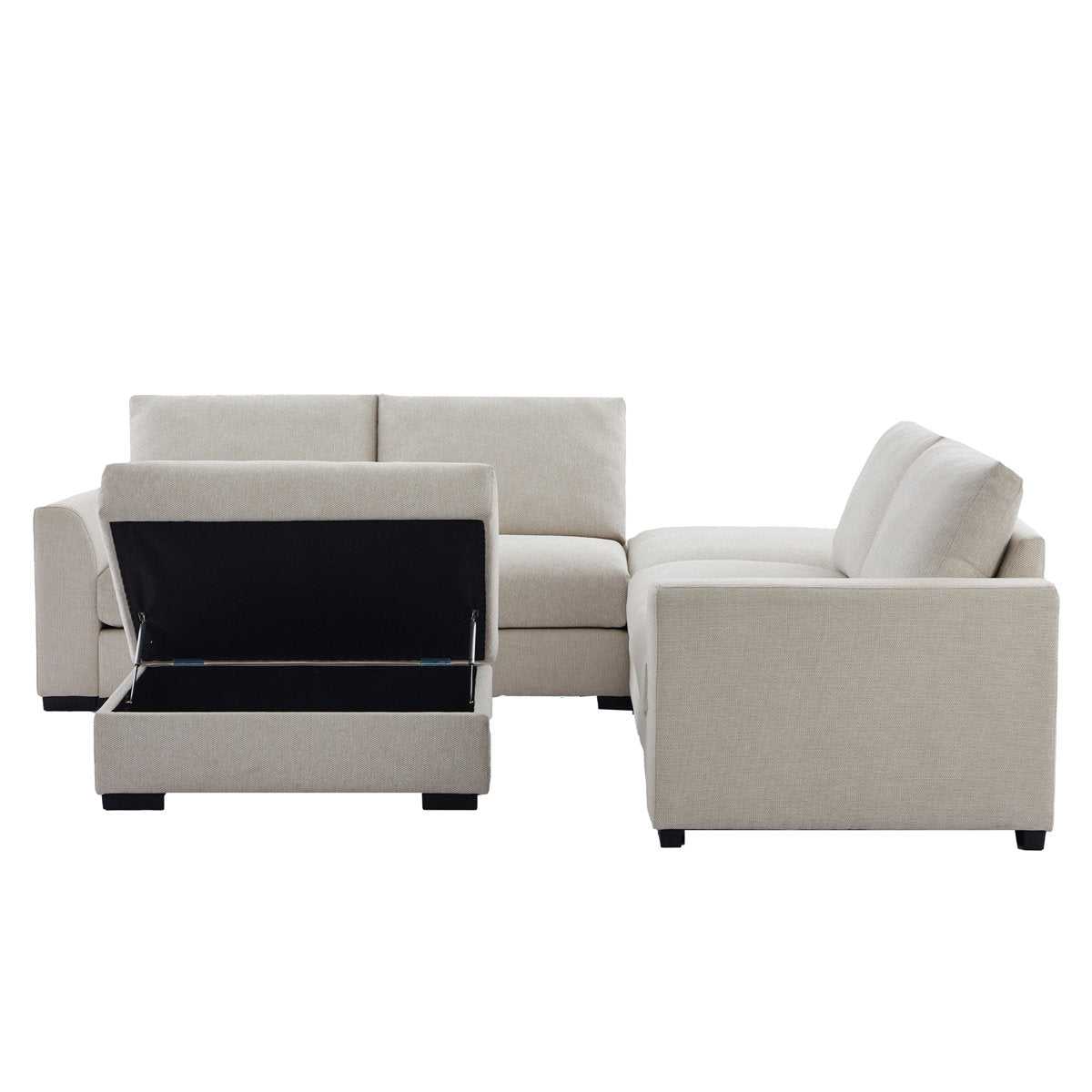 6-piece Wide Arm U shaped Upholstered Modular Sofa With Storage Ottoman