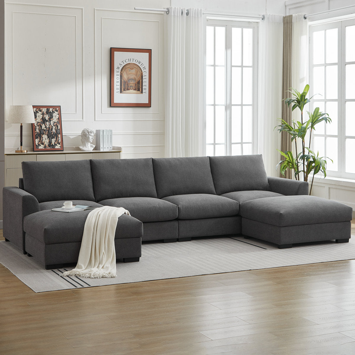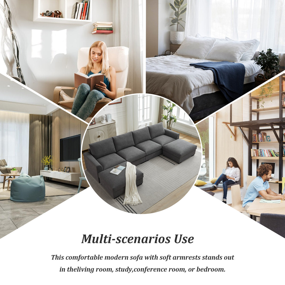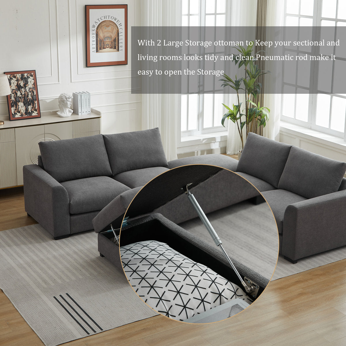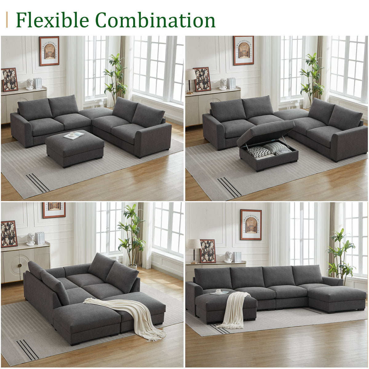 6-piece Wide Arm U shaped Upholstered Modular Sofa With Storage Ottoman
