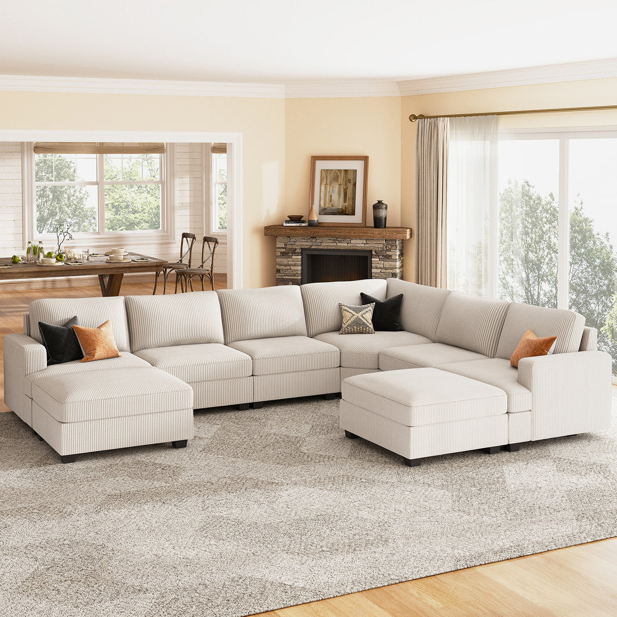 Turrella Corduroy Sectional Upholstered Modular Sectional Sofa with Storage Ottoman
