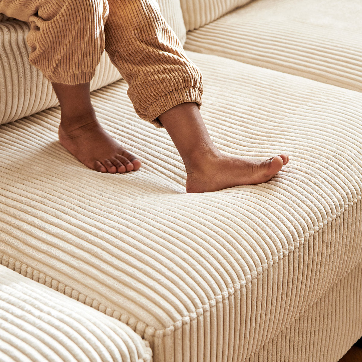 Experience the epitome of comfort and style with our elegant corduroy sectional sofa. Meticulously crafted to blend seamlessly into your contemporary living space, this piece is a harmonious blend of sophistication and functionality. With its plush cushioning and sleek design, it's not just a sofa—it's an invitation to relax and relish the moments that matter. Dive into unparalleled comfort and let your space radiate warmth and elegance.