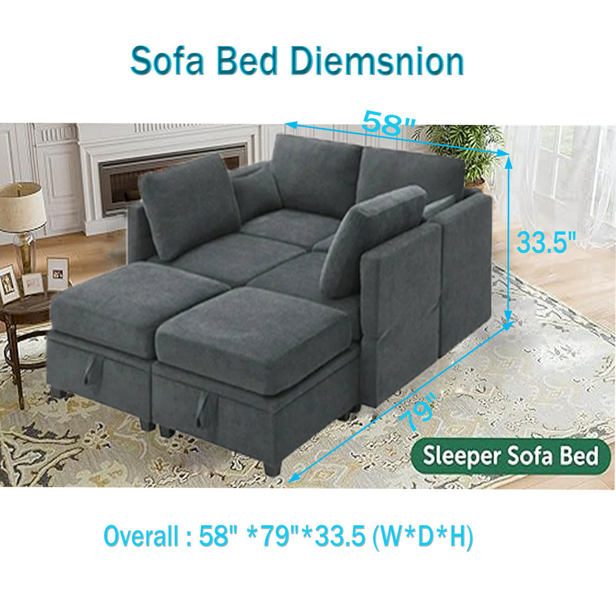 Hashim 6 - Piece Free Form Upholstered Convertible Modular Sofa Sectional with Storage