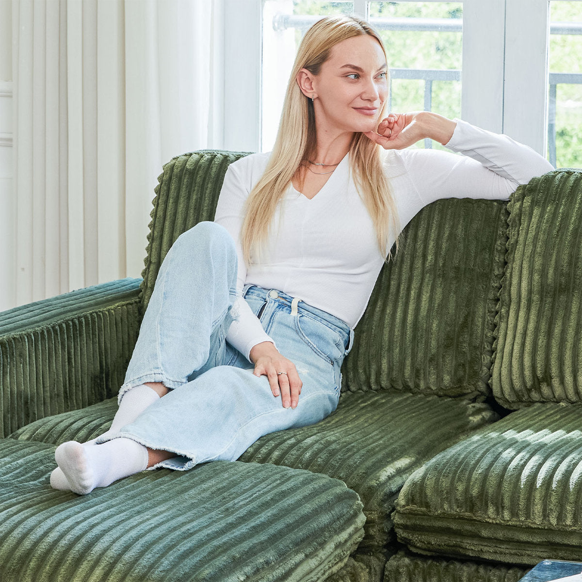 The 3-seat sofa has beautiful appearance and good quality, which is very suitable for the livingroom. There are a lot advantages for this modular sofa, the underseat storage space, removable and washable cover, moveable storage ottoman, sturdy frame and soft fabric, easy to install. It's just right to have this 3-seat sofa if you has an apartment or such a room.