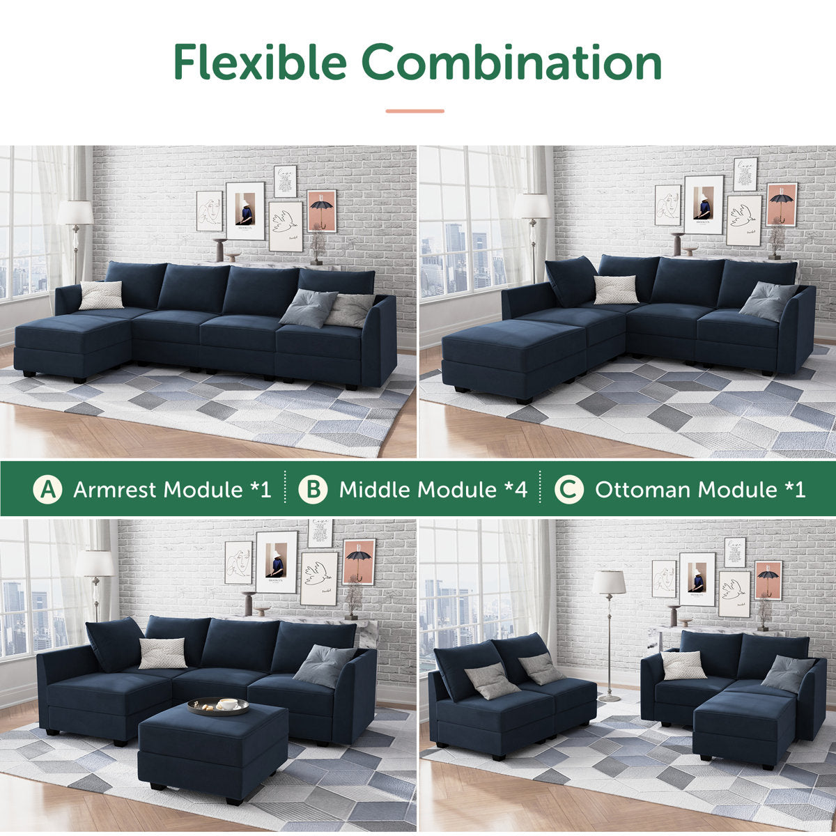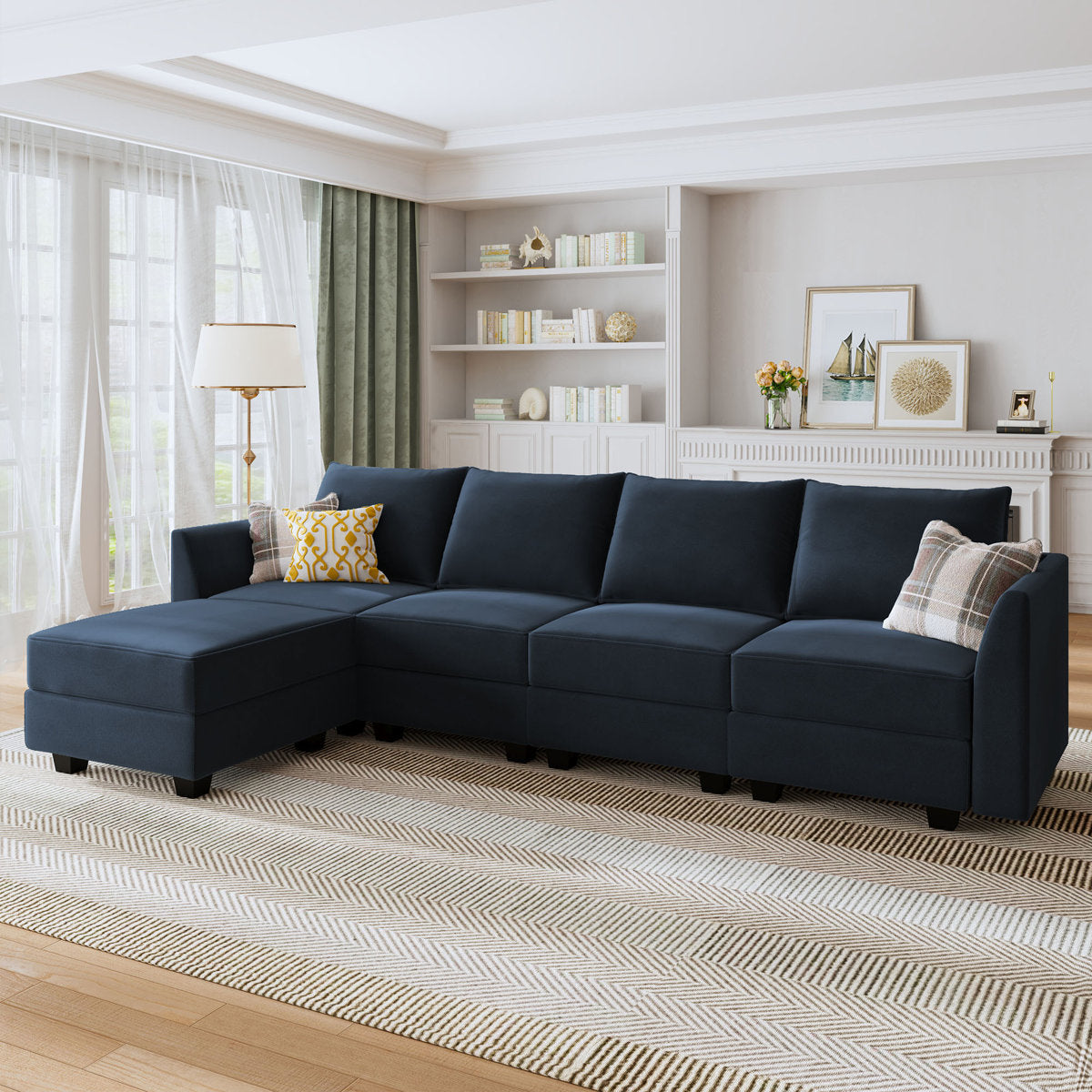 This L-shaped modular sectional is built for durability and designed to enhance your lifestyle with its multi-functionality and easy assembly. Crafted using engineering precision, it offers thick, cozy seats upholstered in soft velvet and equipped with a high-density sponge that evenly distributes pressure for ultimate comfort. The removable back cushions, filled with high-resilience foam, allow for effortless cleaning. The sectional's flexibility enables easy disassembly and reassembly, making it convenient to move and configure as desired. A hidden storage feature keeps your room looking neat and tidy, adding a practical touch to this versatile piece.