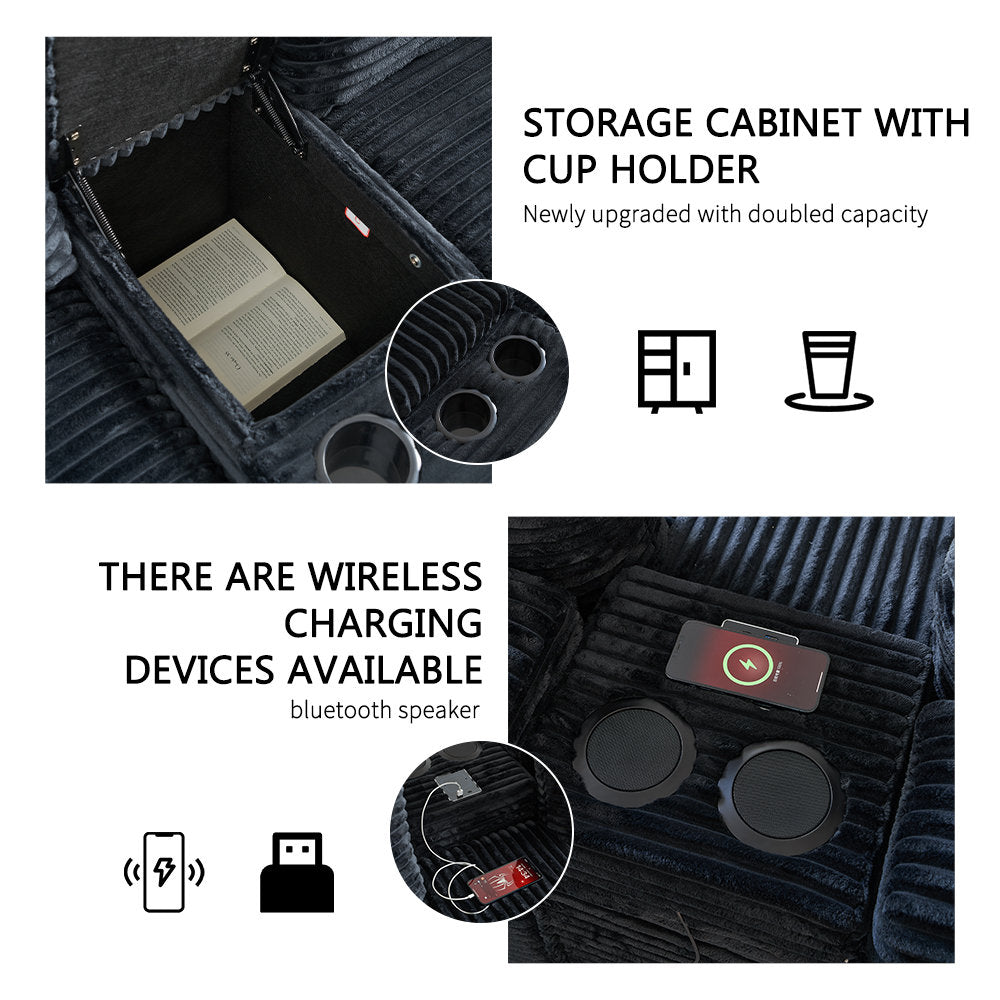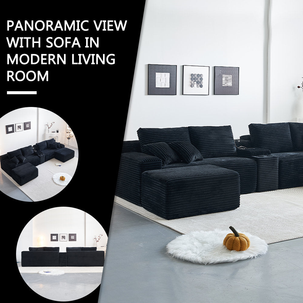 150''width 5-piece Comfy U-shaped Sofa Couch Sectional Upholstered Corduroy For Living Room Free Combination,Console, Cup Holders, USB Ports,Bluetooth Speaker